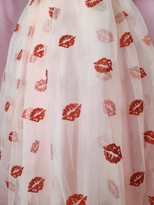 Pink & Red Glitter Lips Brilliance Swing Skirt by Unique Vintage