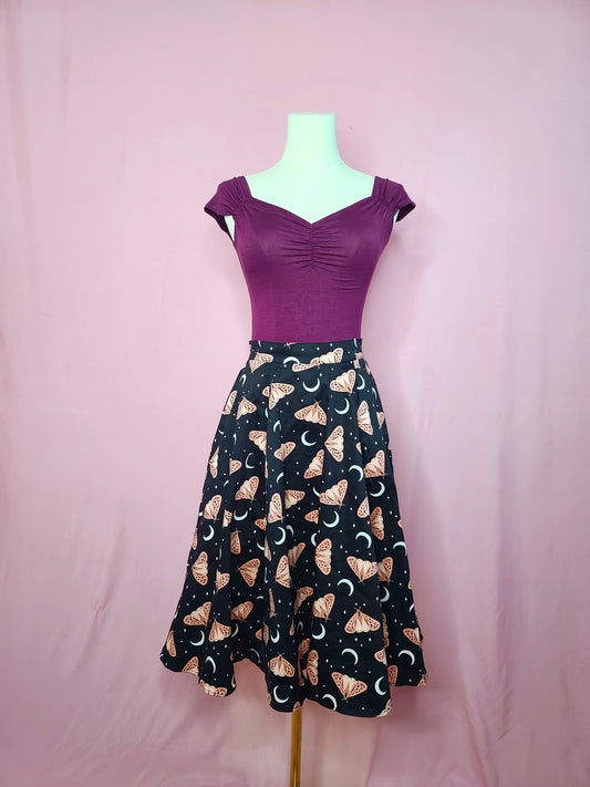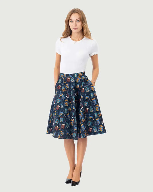 Fit & Flare Moon & Butterfly Print Skirt by Eva Rose Clothing
