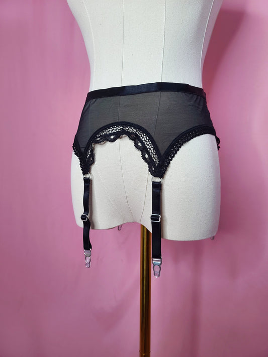 Sheerly Mesh Adjustable Garter Belt in Black by Uye Surana