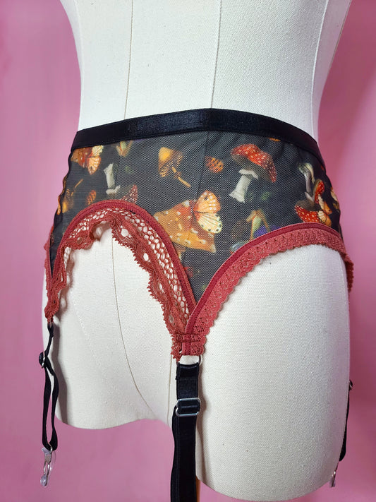 Mystical Mushrooms Adjustable Garter Belt by Uye Surana