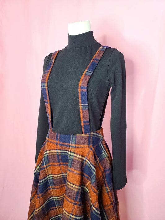 Sophie Navy and Rust Suspender Swing Skirt by Timeless London -FINAL SALE