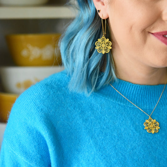 Pyrex Crazy Daisy aka Spring Blossom Bowl Inspired Necklace by A Tea Leaf Jewelry