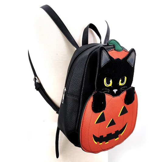 Furry Black Cat in Pumpkin Mini Backpack