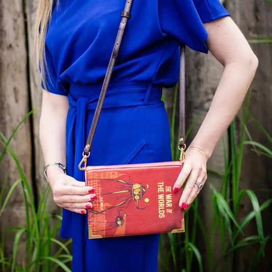 The War of the Worlds Dark Red Book Crossbody Clutch Handbag